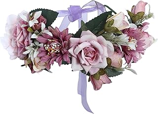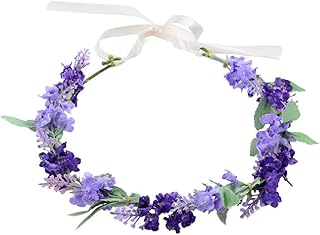 Lurrose Serre-tête couronne florale lavande couronne bandeau guirlande pour mariée filles femmes mariage fête d'anniversaire (violet)
