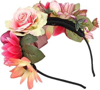 Simsly Boho guirlande florale couronne fleur bandeau Fleurs de mariage guirlande Headpiece Accessoires cheveux pour femmes et filles. (Rouge)