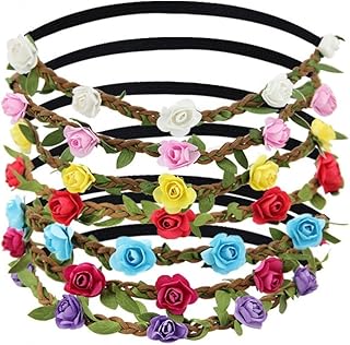 JTDEAL 7Pcs Fleurs Couronne Bandeau Cheveux, Couronne Guirlande Serre-têtes avec Ruban Élastique pour Guirlande Mariage Fête Femme et Fille (Multicolor)