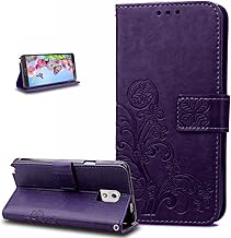 ikasus Coque Galaxy Note 3 Etui Gaufrage Trèfle Fleur Motif Housse Cuir PU Housse Etui Coque Portefeuille Protection supporter Flip Case Etui Housse Coque pour Galaxy Note 3,Violet