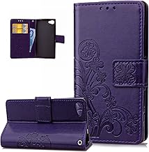 ikasus Coque Sony Xperia Z5 Compact Etui Gaufrage Trèfle Fleur Motif Housse Cuir PU Housse Etui Coque Portefeuille Protection supporter Flip Case Etui Housse Coque pour Sony Xperia Z5 Compact,Violet