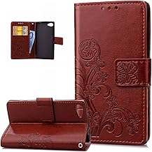 ikasus Coque Sony Xperia Z5 Compact Etui Gaufrage Trèfle Fleur Motif Housse Cuir PU Housse Etui Coque Portefeuille Protection supporter Flip Case Etui Housse Coque pour Sony Xperia Z5 Compact,Marron
