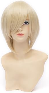 QIYUN.Z Alois Trancy Majordome Noir Carre Court Blond Costume Droit D'Anime Cosplay Unisexe Chaleur De Cheveux De Fibre Synthetique Perruque Resistant Pour Les Femmes