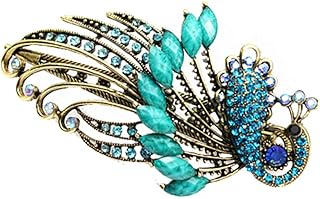 JUNGEN Barrette Forme Paon Bijou de cheveux Peigne De Cheveux Rétro Couleur Épingle À Cheveux Inlay Coloré Strass Pinces À Cheveux (Bleu)