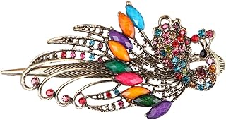 NUOBESTY Pince à Cheveux Paon Vintage Cristal Strass Mariage Casque de Mariée Bâton Barrette Pince Crocodile Broches Barrette pour Femme Dame