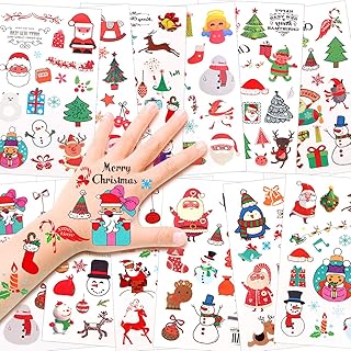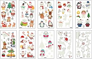 Nuluxi Lumineux Tatouages Temporaires pour Enfants Tatouages Ephémères De Noël Étanche Autocollants de tatouages sur le thème de Noël Convient pour Enfants de Fête d'Anniversaire Cadeau (10 Feuilles)