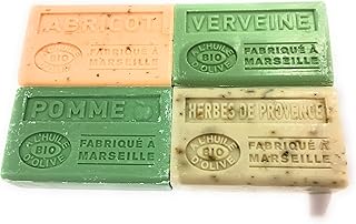 Label Provence - Lot de 4 savons de Marseille à l'huile d'Olive BIO senteur Herbes de Provence-Pomme-Verveine et Abricot - 125gr x4 - fabriqué à Marseille
