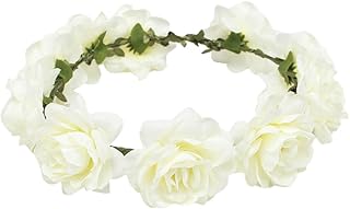AWAYTR Femmes Filles Bandeaux De Fleurs Couronne - Guirlande De Guirlande De Cheveux De Fleur À La Main Avec Ruban Pour Fête De Mariage Festival (Blanc crème)