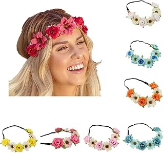 Couronne de Fleurs Multicolore Couronne de Fleurs Guirlande Florale Bandeaux pour Femmes Filles Cheveux Accessoires 8 pièces