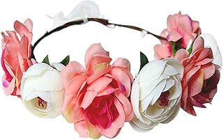 Ssowun Couronne de Fleurs pour Cheveux,Fletion Couronne de Fleurs Mariage Fleur Bandeaux de Fleurs Rose Perlé pour Fêtes Voyage Ruban Serre-tête Accessoires Cheveux de Mariage