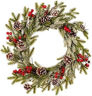 Guirlande De Noël,Couronne Décoration de Noël Couronne D'automne Guirlande de Noël Artificielles Fait à Main, Couronne de Fleurs Idéal Déco Noël pour Votre Porte, Mur ou Fenêtre